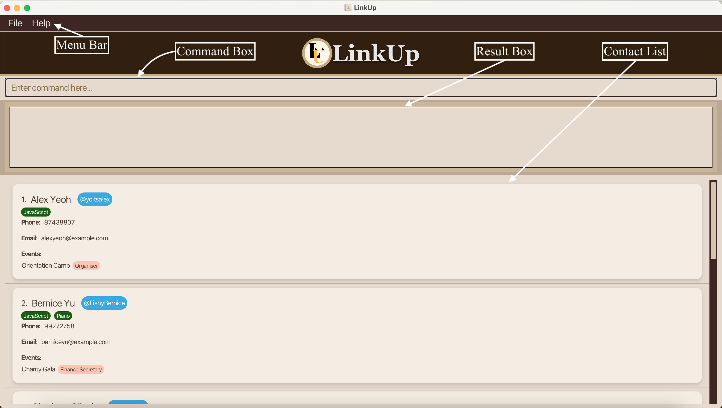 Meet LinkUp, a desktop app designed to help team leaders manage their contacts more efficiently and effectively. Optimized for users who prefer typing commands to use systems, LinkUp helps you manage your contacts without ever taking your hands off your keyboard.